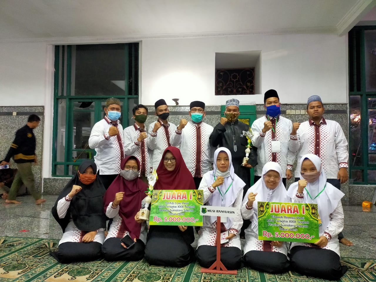 PALEMBANG, – Bangga sekaligus haru, suasana itulah yang tampak dirasakan Nur Marhama dan Uswatun Hasanah, Jumat (11/9/2020) malam pada rangkaian Penutupan Musabaqoh Tilawatil Qur’an Terbatas ke-XXIX Tingkat Provinsi Sumatera Selatan Tahun 2020 di Masjid Agung Sultan Mahmud Badaruddin Jayo Wikramo Palembang.
