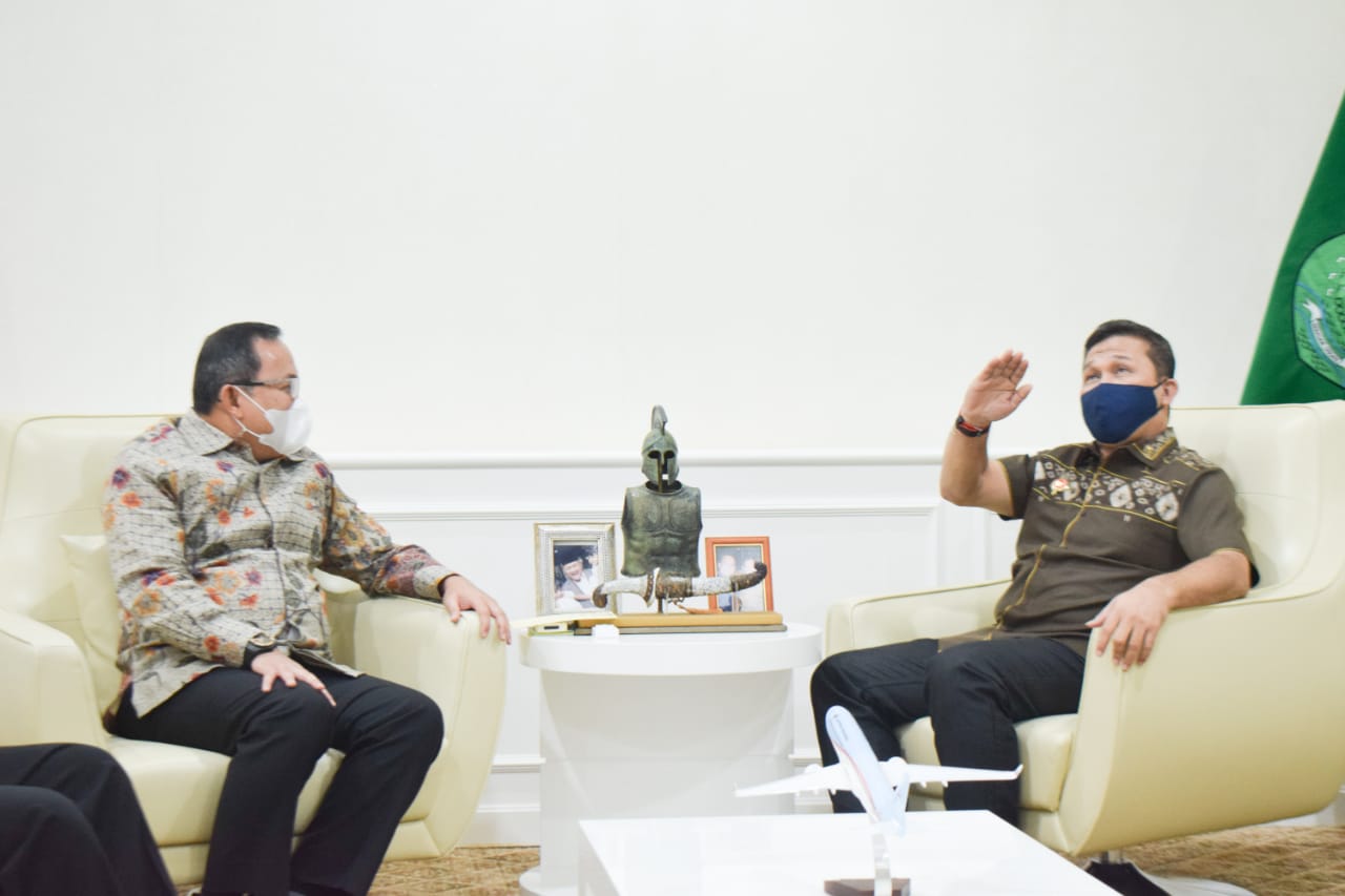 MUBA, – Bupati Musi Banyuasin Dr H Dodi Reza Alex Noerdin menerima kunjungan Kepala Badan Intelijen Negara (BIN) Daerah Provinsi Sumatera Selatan (Sumsel), Brigjen TNI Armansyah SH di ruang audiensi Bupati Muba, Senin (19/4/2021).