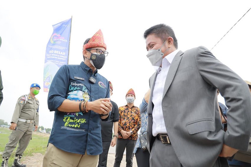 OGAN ILIR, – Menteri Prawisata dan Ekonomi Kreatif (Menparekraf) RI, Sandiaga Salahuddin Uno memberikan apresiasi atas peran Gubernur Sumsel H Herman Deru terhadap perkembangan desa wisata di Sumsel.