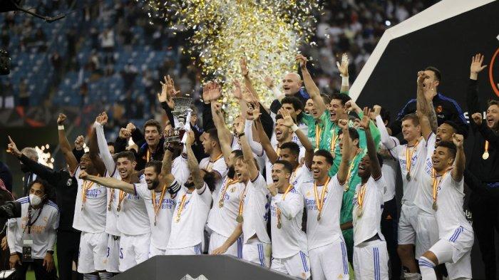 RIYADH, – Real Madrid melawan Athletic Bilbao di final Piala Super Spanyol 2021-2022. Tanding di King Fahd Stadium, Arab Saudi, Senin (17/1/2022), dini hari WIB, Los Blancos menang 2-0 sehingga berhak atas trofi Piala Super Spanyol musim ini.
